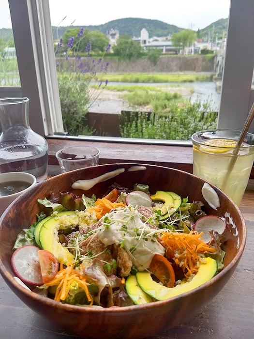 Veg Out cafe lies along Shichijo-dori street in Kyoto, looking out to the famous Kamogawa River. It is not quite the area for tourism, yet many still visit the cafe for meals. The menu is healthy and varied, offering also volume for a satisfactory vegan meal. However, it is not just a simple vegan option. Veg Out cafe may be humble in size, but it has a big heart for sustainability.