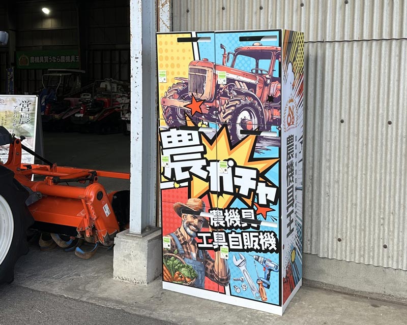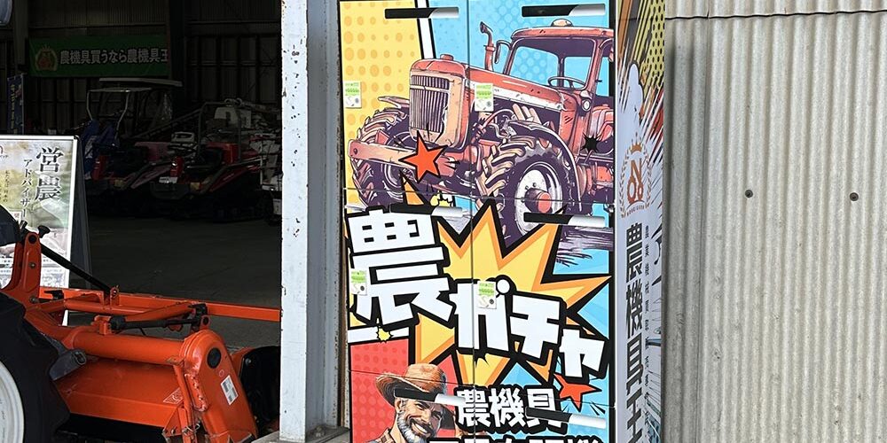 An operator of the used farm equipment retailer Nokigu-Ou is turning heads with an unusual attraction: an agricultural gacha. The aim is to use this agriculture vending machine as a tool to alleviate the problems of Japan’s declining agricultural population.