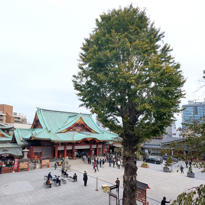 On the grounds stands the famed ginkgo which watches over the precincts. It began as a sprout that survived the 1923 Great Kantō Earthquake, and today stands as a symbol of resilience and growth.