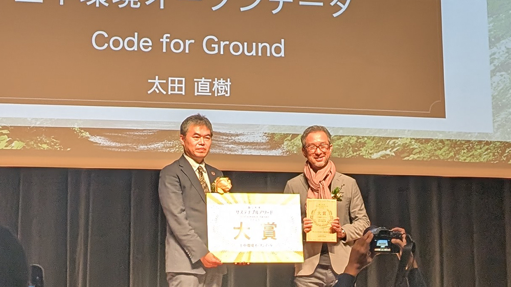 The Grand Award of the Future with Forest Sustainable Award 2025 went to Code for Japan for Code for Ground. It is a voluntary organisation that focuses on the soil, watersheds, and water cycle connecting mountains, villages and the sea.