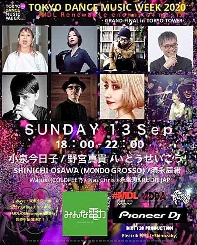 Tokyo Dance Music Week is held annually in the week of September 9. This year it began on Monday, Sept. 7. The finale, titled “#MDL Renewable energy of music,” will be held Sunday, September 13 from 6 p.m. to 10 p.m. Japan time, starting with a group discussion.