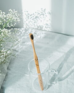 One of the products featured by COEXIST is an all-natural toothbrush by Nhes, based in Osaka. Bristles, the hair of horses and pigs discarded in the food industry, are meticulously planted by a 76-year-old female craftsperson onto handles made of beech wood salvaged from furniture-making. Complementing the natural toothbrush is plastic-free toothpaste made by a company based in Shiga Prefecture, Soorb. It is in a tablet form, without abrasive or forming agent, and made of food ingredients, such as eggshell, and comes in a glass jar.
