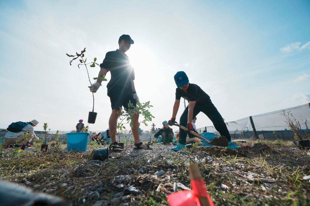 Suzuki planting trees (left) (Image: Keisuke Hirai)