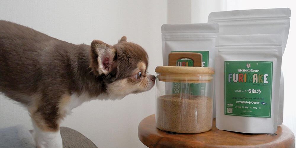 A merger of tradition and modern sensibilities, the new furikake, which translates to a sprinkle-over food topping, is a fusion of Uneno’s stringent selection process and mellowbear’s emphasis on a sustainable and serene canine lifestyle. A notable ingredient is the “dashigara” or the residue left from Uneno’s premium additive-free dashi-making process. Not only fit for human consumption, this particular residue, with its reduced salt content, emerges as an optimal choice for dog meals.