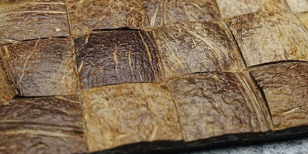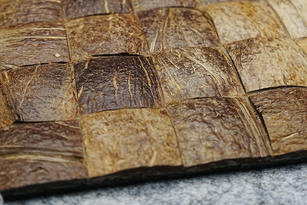 Shikada Sangyo Inc., a Fukuoka-based manufacturer of natural interior materials, is showcasing its Coco Mosaic Tile, upcycled from coconut shells.