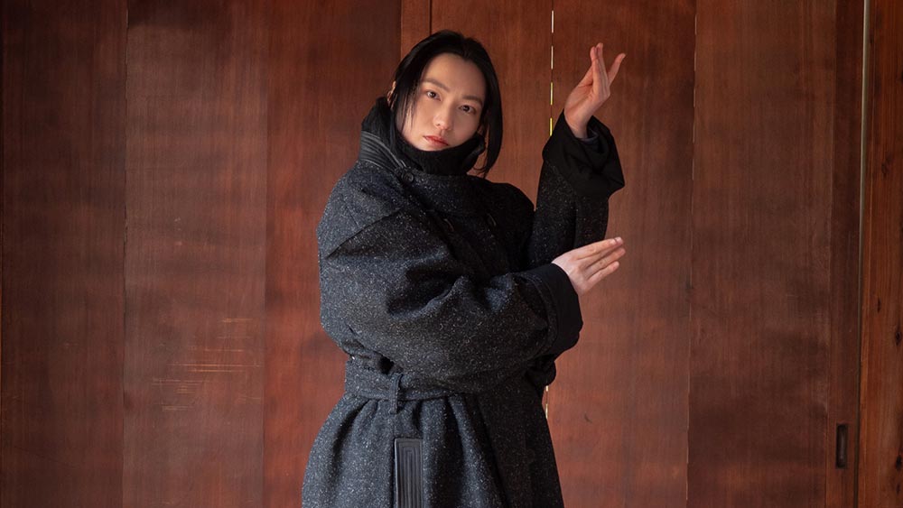 Central to this collection is the ZEAMI coat. The use of Sakiori, a traditional weaving method that transforms old textiles into new fabrics, represents renewal and sustainability. Additionally, gibier leather adds a further layer of sustainability in fashion.