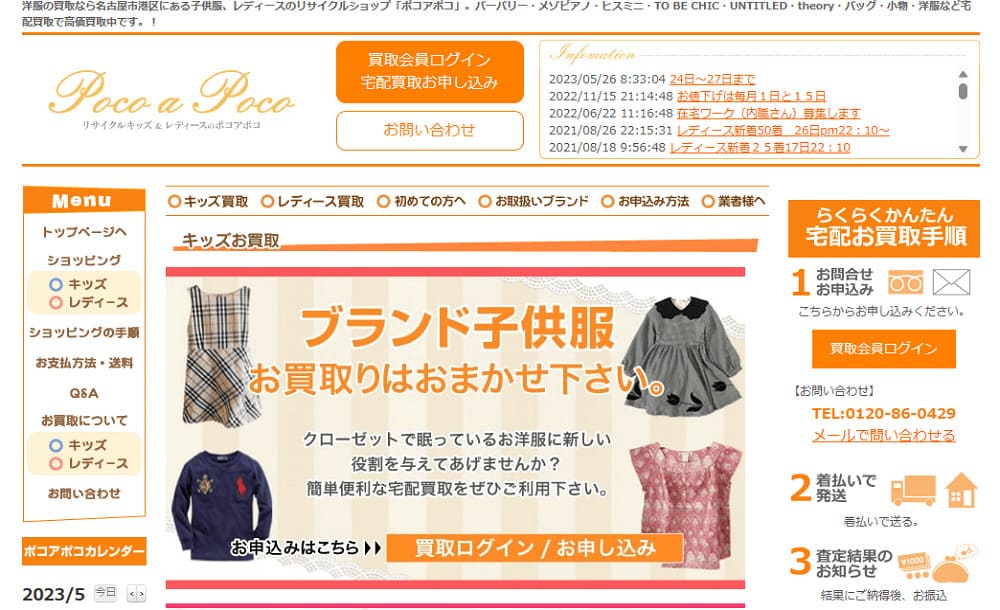 Located in Nagoya City, Poco a Poco is a recycling shop specializing in children’s clothes and women’s wear. They have designated target brands for strengthening buyback, so you might be able to sell your items at a high price. While branded clothing is their main focus, they also accept non-branded formal wear.