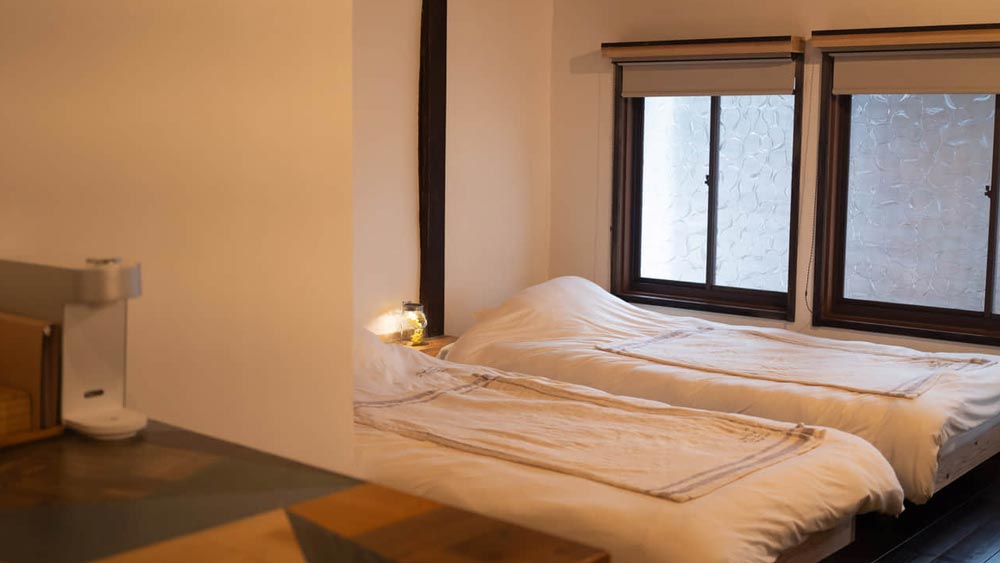 Rokkon Guesthouse is set in a townhouse that is over 100 years old and was renovated, with the interior work also done by her carpenter husband. Interestingly, they heard about the property from a farmer who provides vegetables for Kikuya General Store. Kayoko laughs, “It was all through human connections.”