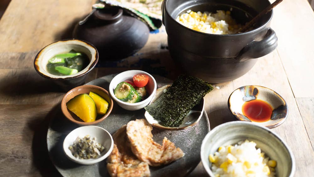 The breakfast features organic, fertilizer-free, and compost-free vegetables grown in Kameoka, Kyoto, by “Poton Farm” and freshly delivered rice and vegetables from “Wildlife Life” in Kyohoku. They also accommodate vegetarians, vegans, and those with allergies.