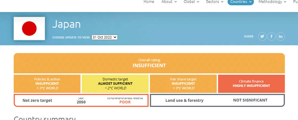 Let’s start by looking at the state of climate action in Japan. Firstly, the Japanese government is known for being slow to implement policy. The researcher-led Climate Action Tracker rates Japan’s current climate initiatives as insufficient. While climate activists attempt to push the government to take more meaningful action, in a society based on demureness and cohesion, there is a bias against overt individual action, and street protests, in particular.