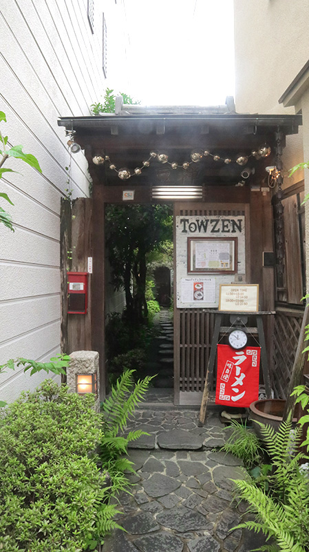 Ramen restaurant TowZen is located in Kyoto, in a quaint neighborhood just 10 minutes walk from the renowned Shimogawa Shrine. At the end of the cute entrance of greenery lays the entrance to the hidden ramen restaurant with a heartwarming decor. The world’s first vegan ramen awaits to delight anyone who visit.