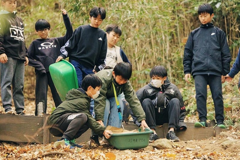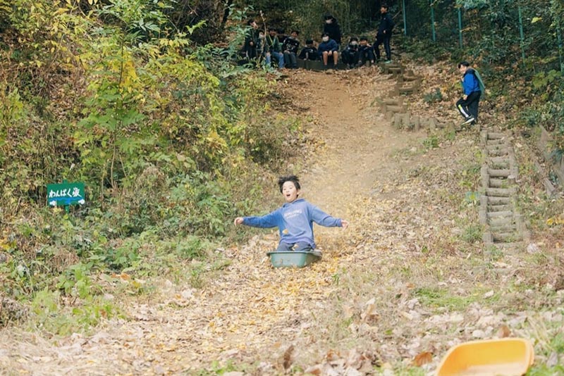 In addition to manufacturing, the school also runs the Athletic Forest project, in which they maintain the forest behind the school and build their own playground. Having nature close to where they can play to their heart’s content helps children feel at ease, and the students describe their time in the forest vividly. “Even just walking in the woods is fun because you come across so many different things,” one child said. “The fallen leaves make a great sound when you step on them. Even if I get bitten by insects, I still want to play in nature,” another added.