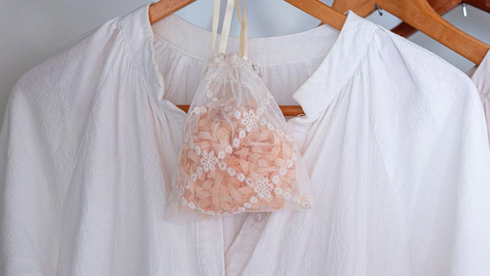 The wood, Kiso Hinoki, comes from trees that are as much as 300 years old. Grown near sacred trees and revered for their spiritual significance, Kiso Hinoki is typically used in creating items for religious ceremonies in some of Japan’s most important shrines and temples. But rather than allowing the byproducts of this precious resource to go to waste, artisans at Iwata Sanpou Seisakusho have found a way to extend the life of the material. What would have been discarded is now being transformed into aromatic cushioning material that can protect delicate items or reused in homes as sachets to scent closets or shoe boxes.